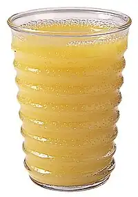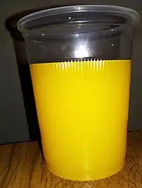![]() Zumo de naranja; en muchos de los casos el zumo de naranja lleva colorantes anaranjados para ser más atractivos al consumidor. | ||