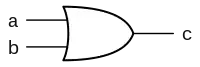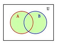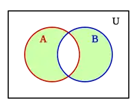 La operación disyunción lógica de proposiciones, es equivalente a la unión de conjuntos en teoría de conjuntos, a la puerta lógica OR: