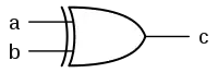 Esta operación también se llama o exclusivo, uno o el otro pero no los dos, le corresponde la puerta lógica: XOR.