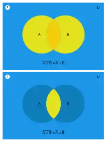 - A ∩ B = A ∪ B