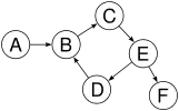 ![]() No es un árbol: En el ciclo B→C→E→D→B, B tiene más de un padre. |