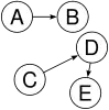 ![]() No es un árbol: Hay dos partes sin conectar (A→B y C→D→E), luego existe más de una raíz. |