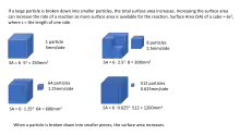 El área superficial es importante en la cinética química. El aumento del área de superficie de una sustancia generalmente aumenta la velocidad de una reacción química. Por ejemplo, el hierro en un polvo fino se quemará mientras que en los bloques sólidos es lo suficientemente estable como para utilizarlo en estructuras. Para diferentes aplicaciones, se puede desear un área de superficie mínima o máxima.