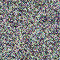 | Ejemplo ilustrando la importancia del protocolo de enfriamiento: El problema consiste en disponer los píxeles en la imagen de tal manera que se minimice una función de energía potencial que causa que los colores similares se atraigan a distancias cortas y se repelan a distancias largas. En cada iteración se intercambian las posiciones de dos píxeles adyacentes. La imagen de la izquierda es obtenida con un protocolo de enfriado rápido, en el que la temperatura desciende rápidamente, y la de la derecha, con un protocolo lento, equiparables a los procesos de formación de sólidos amorfos y cristalinos respectivamente. | |
