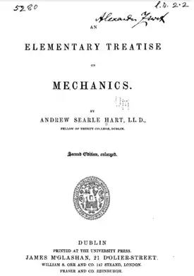 - An Elementary Treatise on Mechanics, 1844; 2nd edit. 1847.