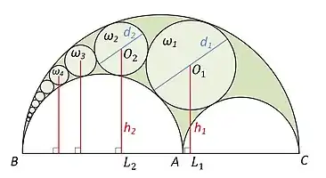 Dado un arbelos ABC (el punto A se encuentra entre los puntos B y C) y el conjunto de círculos , , ..., (), siendo el círculo tangente a los arcos AB, BC y AC; y de forma que para todo , el círculo es tangente a los arcos AB y BC y al círculo anterior .