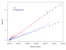 Al realizar pruebas en entornos basados en la red, típicos de los juegos de ordenador, incluyendo obstáculos infranqueables, Búsqueda por Franjas superó a A* en un 10 a 40 por ciento. Posibles mejoras adicionales incluyen el uso de una estructura de datos que funcione más fácilmente como caché.