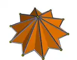Una bipirámide con auto-intersección o en estrella' tiene una base en forma de polígono estrellado.