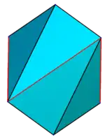 - Bipirámide triangular – 6 caras – dual: Prisma triangular