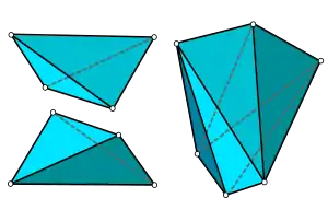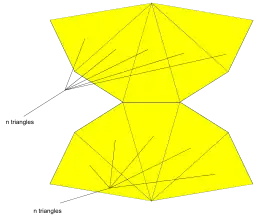 Tiene dos ápices y 2n vértices alrededor de los lados, 4n caras y 6n aristas; es topológicamente idéntico a una bipirámide 2n-gonal, pero sus 2n vértices se alternan en dos anillos situados por encima y por debajo del centro.[6]