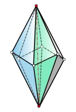 Una bipirámide (o dipirámide) n-gonal es un poliedro formado por la reunión base con base de una pirámide n-gonal con su simétrica respecto al plano de la base. El n-gono de la bipirámide hace referencia a la figura 2D formada por la base que une las dos mitades piramidales simétricas respecto a su plano común.[3]