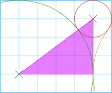 Dos círculos son mutua y externamente tangentes si la distancia entre sus centros es igual a la suma de sus radios.[1] Dos círculos son mutua e internamente tangentes si la distancia entre sus centros es igual a la diferencia de sus radios.