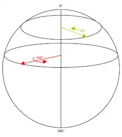 La forma en que se puede usar el radio para especificar el ángulo de rotación no es directa. Puede relacionarse con círculos de latitud en una esfera con un polo norte definido, y se explica a continuación.