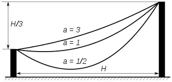 es la componente horizontal de la tensión, que es constante, es la masa por unidad de longitud del hilo y es la función coseno hiperbólico. Si se desarrolla en series de Taylor la ecuación de la catenaria () se obtiene una curva cercana a una parábola: