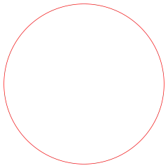 Un chiliágono regular no se distingue de un círculo. La línea de abajo es una sección de un chiliágono regular con los vértices marcados, aumentada 200 veces en relación con el círculo más pequeño (izquierda)