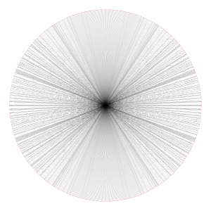 Por ejemplo, el polígono en forma de estrella regular {1000/499} está construido por 1000 lados casi radiales. Cada vértice de la estrella tiene un ángulo interior de 0,36 grados.[10]
