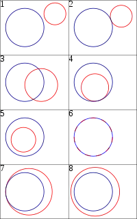- Una circunferencia es exterior a otra, si todos sus puntos son exteriores a esta otra. Véase la figura 1 y 8.