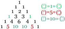 Hay una fórmula recursiva para los coeficientes binomiales (véase El teorema de Pascal):