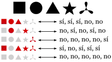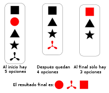 Del mismo modo, dada una sucesión de cinco opciones sí/no, es posible recuperar el conjunto que le da origen: