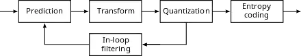 En una etapa adicional de filtrado en bucle se pueden aplicar varios filtros a la señal de imagen reconstruida. Al computar estos filtros también dentro del bucle de codificación pueden ayudar a la compresión porque pueden aplicarse al material de referencia antes de que se utilice en el proceso de predicción y pueden guiarse utilizando la señal original. El ejemplo más popular son los filtros de desbloqueo que eliminan los artefactos de bloqueo de las discontinuidades de cuantificación en los límites de los bloques de transformación.