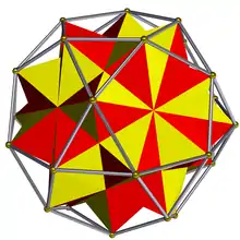 También puede verse como un politopo compuesto de cinco octaedros dispuestos según un patrón de simetría icosaédrica (Ih).