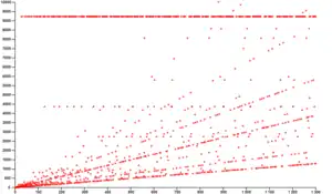 - Empezando en n = 40523437598309, la sucesión tiene 1250 pasos para llegar a 1.