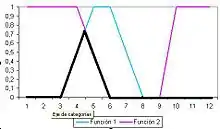 Con los conjuntos difusos se pueden realizar las mismas acciones que con los conjuntos clásicos. Siendo dos conjuntos difusos y se definen las operaciones usuales:[3]