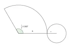 El sector circular está delimitado por dos generatrices, siendo la medida del lado curvo igual a la longitud de la circunferencia de la base.