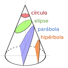 Al cortar con un plano a una superficie cónica, se obtiene distintas figuras geométricas: las secciones cónicas. Dependiendo del ángulo de inclinación y la posición relativa, pueden ser: circunferencias, elipses, parábolas e hipérbolas.