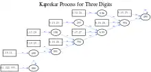 Análogamente al caso de cuatro dígitos, la secuencia siempre convergerá a un valor, en este caso al 495 (la constante de Kaprekar de tres dígitos en base 10),[5] salvo los números con tres cifras iguales que convergerán a la constante trivial.