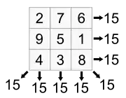 Por ejemplo, el cuadrado mágico de orden tres tiene constante mágica de 15: