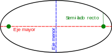 donde e es la excentricidad y es el semilado recto (la distancia perpendicular a un foco desde el eje mayor a la curva). Si e > 1, esta ecuación define una hipérbola; si e = 1, define una parábola; y si e < 1, define una elipse. Para la elipse, el caso especial e = 0 resulta en un círculo de radio .