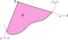 Sea R una región del plano delimitada por la curva continua r(θ) y las semirrectas θ = a y θ = b, donde 0 < b − a < 2π. Entonces, el área de R viene dado por