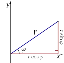 Definido un punto en coordenadas polares por su ángulo sobre el eje x, y su distancia r al centro de coordenadas, se tiene: