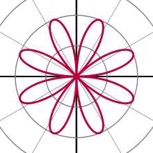para cualquier constante (incluyendo al 0). Si k es un número entero, estas ecuaciones representan una rosa de k pétalos cuando k es impar, o 2k pétalos si k es par. Si k es racional, pero no entero, la gráfica es similar a una rosa, pero con los pétalos solapados. Nótese que estas ecuaciones nunca definen una rosa con 2, 6, 10, 14, etc., pétalos. La variable a representa la longitud de los pétalos de la rosa.