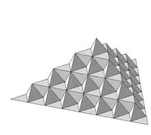 En cada iteración se agrega un nuevo triángulo a cada lado de la iteración anterior, por lo que el número de triángulos nuevos agregados en la iteración n es: