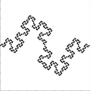 Variante de la curva de Koch con ángulo de 90°. Dimensión de Hausdorff: 1,5.