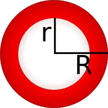 Para determinar la superficie de una corona circular, se tiene que encontrar la diferencia entre las áreas de los dos círculos con-céntricos: el mayor con radio R y el menor con radio r.