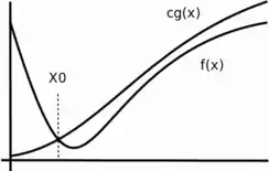 Una función f(x) pertenece a O(g(x)) cuando existe una constante positiva c tal que a partir de un valor , f(x) no sobrepasa a . Quiere decir que la función f es inferior a g a partir de un valor dado salvo por un factor constante.