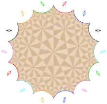 El grupo de automorfismos se puede aumentar (mediante una simetría que no se realiza mediante una simetría del teselado) para generar el grupo de Mathieu M24.[3]