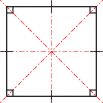• El cuadrado es un objeto altamente simétrico. Tiene cuatro líneas de simetría de reflexión y tiene simetría rotacional de orden 4 (a través de 90°, 180° y 270°). Su grupo de simetría es el grupo diedro D4.