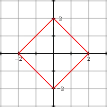 también se puede utilizar para describir el límite de un cuadrado con centro coordenadas (a, b), y un radio horizontal o vertical de r. El cuadrado tiene, por tanto, la forma de una bola topológica según la métrica de distancias L1.