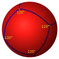 Seis cuadrados pueden tile the sphere with 3 squares around each vertex and 120-degree internal angles. This is called a spherical cube. The Schläfli symbol is {4,3}.