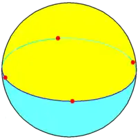 Dos cuadrados pueden embaldosar la esfera en 2 cuadrados alrededor de cada vértice y ángulos internos de 180°. Cada cuadrado cubre una semiesfera por completo y sus vértices se encuentran a lo largo de un gran círculo. Ello es denominado un dihedro cuadrado esférico. El símbolo de Schläfli es {4,2}.