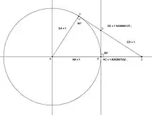 Una construcción geométrica de la constante de Tribonacci (AC), con compás y regla marcada, según el método descrito por Xerardo Neira.