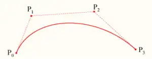 Cuatro puntos del plano o del espacio tridimensional, P0, P1, P2 y P3 definen una curva cúbica de Bézier. La curva comienza en el punto P0 y se dirige hacia P1 y llega a P3 viniendo de la dirección del punto P2. Usualmente, no pasará ni por P1 ni por P2. Estos puntos solo están ahí para proporcionar información direccional. La distancia entre P0 y P1 determina «qué longitud» tiene la curva cuando se mueve hacia la dirección de P2 antes de dirigirse hacia P3.