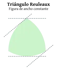 El triángulo de Reuleaux es otro ejemplo. La construcción de este triángulo se hace a partir de un triángulo equilátero ABC, dibujando los arcos BC usando como centro el vértice A, CA con centro en B, y AB con centro en C.