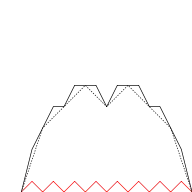 La curva del manjar blanco se puede construir visualmente a partir de funciones de onda triangulares si la suma infinita se aproxima mediante sumas finitas de los primeros términos. En las siguientes ilustraciones, las funciones triangulares progresivamente más finas (mostradas en rojo) se agregan a la curva en cada etapa.