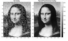 El desarrollo moderno de los códigos de corrección de errores se atribuye a Richard Hamming en 1947.[7] Una descripción del código de Hamming apareció en A Mathematical Theory of Communication de Claude Shannon[8] y fue generalizado rápidamente por J. J. Golay.[9]