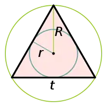 La igualdad se da por ejemplo para un triángulo equilátero cuya circunferencia circunscrita tiene un diámetro . El resultado es un caso particular del teorema de Jung que generaliza el resultado anterior para un espacio euclídeo de cualquier número de dimensiones.